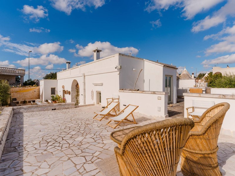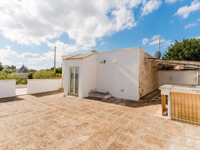 L'affascinante immobile, cui si accede da un viale costeggiato da muretti a secco, tipici della nostra zona, è composto da trulli e da un fabbricato di nuova costruzione con terrazza adibita a zona relax.