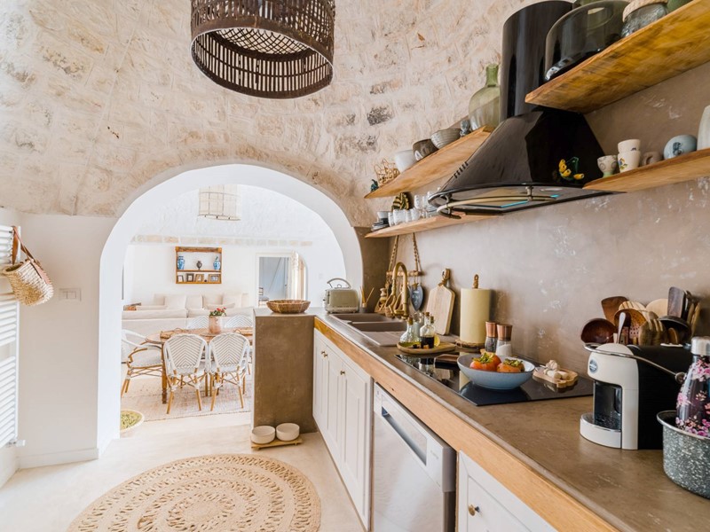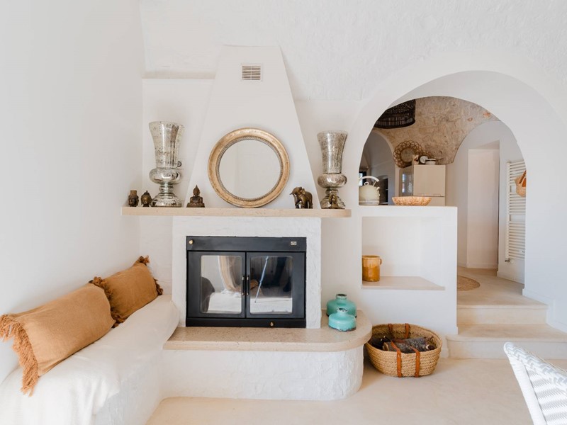 Dallo stesso living passando per un suggestivo angolo con un bellissimo camino, si accede ad una cucina.