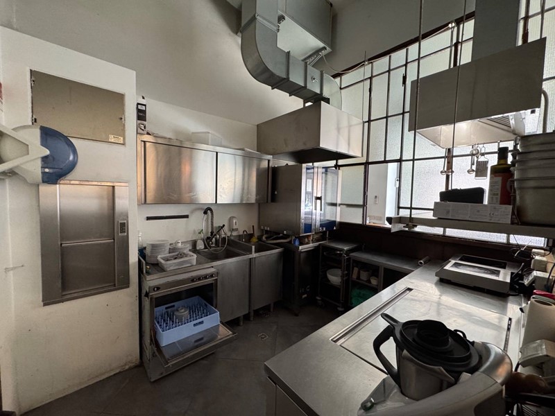Completa la soluzione una cantina esterna di pertinenza, con relativo montacarichi di collegamento interno con la cucina e relativo dehor esterno con circa 20 coperti.