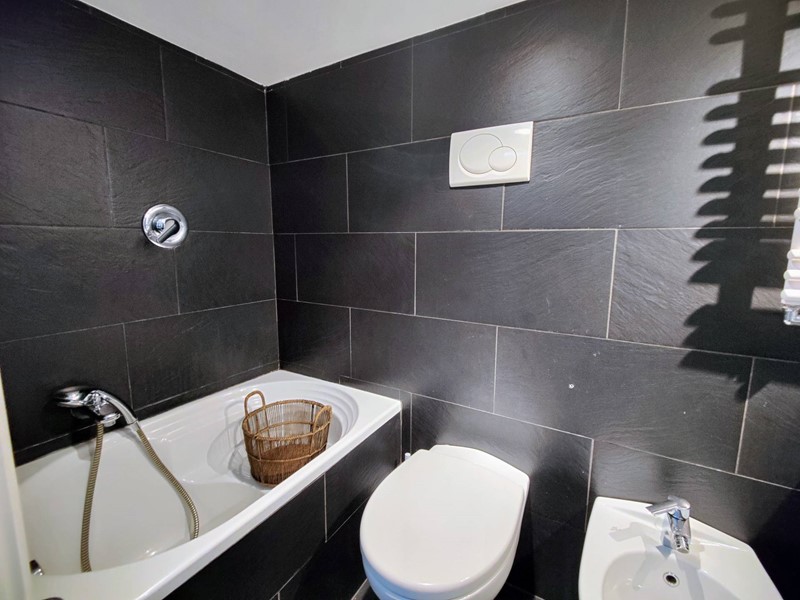 Imagine entering this charming three-story apartment, consisting of a welcoming entrance, a spacious living room and functional open-plan kitchen, two bathrooms, and two bedrooms. The apartment is furnished and equipped with autonomous heating, refrigerator, washing machine, and cooktops.