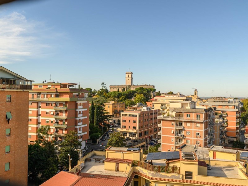 Monterotondo - zona centrale, proponiamo in vendita uno splendido attico di 150 mq con terrazzo di 150 mq e box auto di 20 mq. Appartamento al piano settimo servito da ascensore composto da ingresso, salone doppio, cucina abitabile con camino, corridoio, tre camere da letto matrimoniali, una camera singola e doppi servizi entrambi con finestra. Ti presentiamo uno splendido attico di 150 mq al settimo piano, servito comodamente da ascensore, garantendoti la massima tranquillità e una vista impagabile. Entrando, sarai subito accolto da un luminoso salone doppio, lo spazio ideale per i tuoi momenti di convivialità, e da una cucina abitabile con camino.