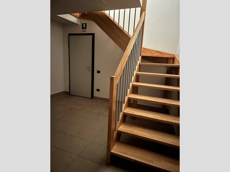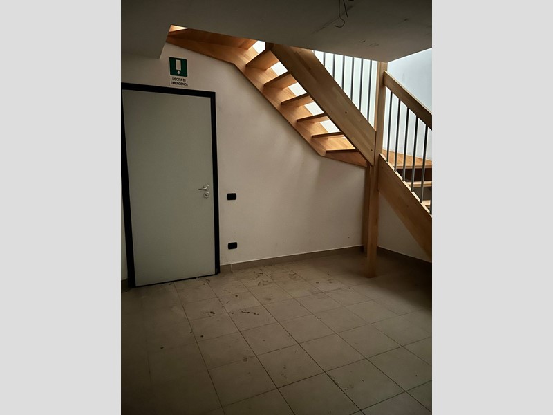 Piano terra (entrata) con vetrina fronte portici, ambiente open space ideale per accoglienza clienti o area espositiva;