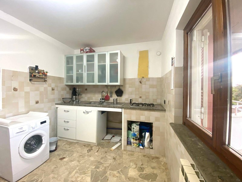 La proprietà si sviluppa su tre livelli. Al piano terra troviamo un salone con cucina a vista, che può essere facilmente separata per creare due ambienti distinti. Lingresso è valorizzato da un elegante disimpegno, mentre il bagno finestrato con doccia completa la zona giorno.