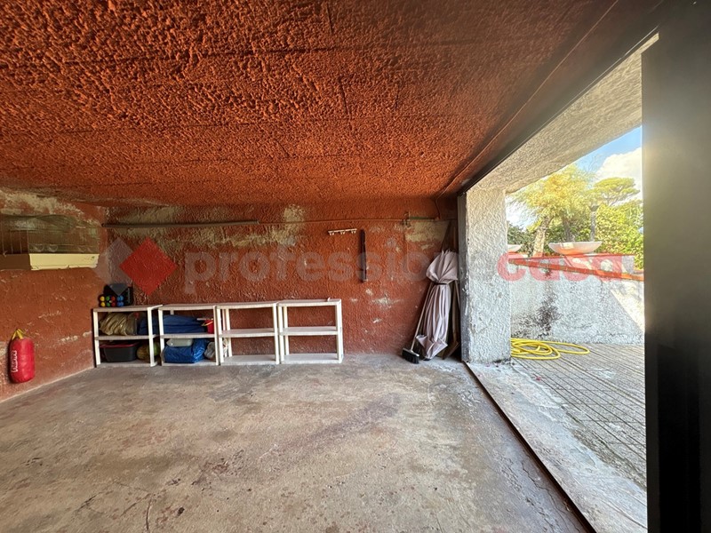 Alle spalle della villa, si trova una splendida terrazza, perfetta per aperitivi esclusivi e momenti di relax. La prestigiosa proprietà dispone di accesso carrabile automatizzato, che ci conduce direttamente in un'area pavimentata destinata al parcheggio che può contenere fino a dieci auto e da esso si accede sia ad un garage di 40 mq. con annesso ripostiglio e sia all'ingresso principale della proprietà, sita nella parte superiore il cui perimetro è percorribile grazie ad una doppia salita.