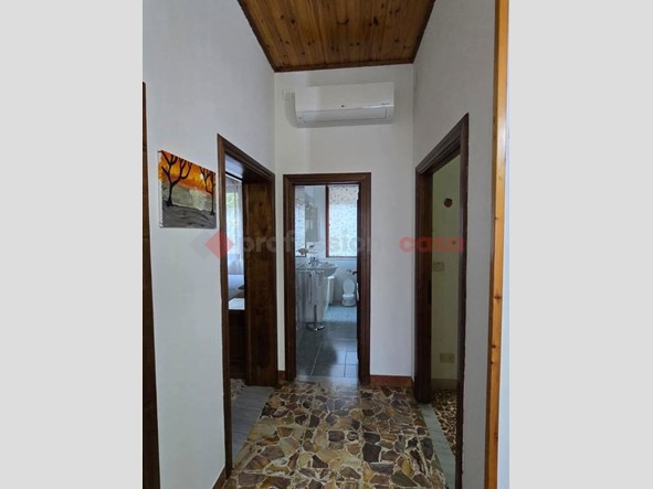 La casa è dotata di infissi doppi in alluminio, cappotto interno e climatizzatore, per garantire comfort e risparmio energetico in ogni stagione. Completa la proprietà un ampio garage di ben 48 mq al piano terra, provvisto di bagno e lavandino, perfetto come rimessa o come spazio aggiuntivo per hobby o deposito.
