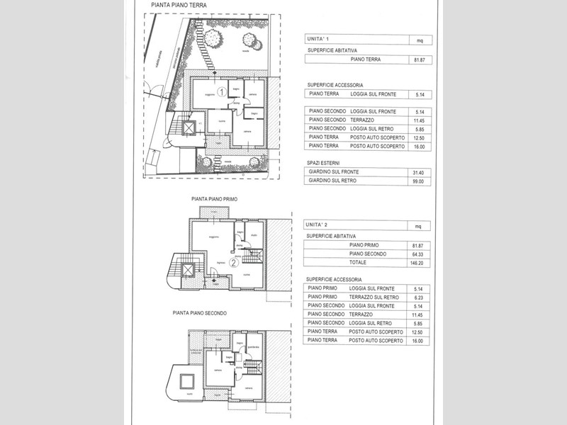1)appartamento al piano terra libero su tre lati con soggiorno, cucina abitabile,disimpegno, camera marimoniale, camera singola, doppi servizi, il tutto servito da ampi spazi esterni con loggia e giardinoe posti auto esclusivo.