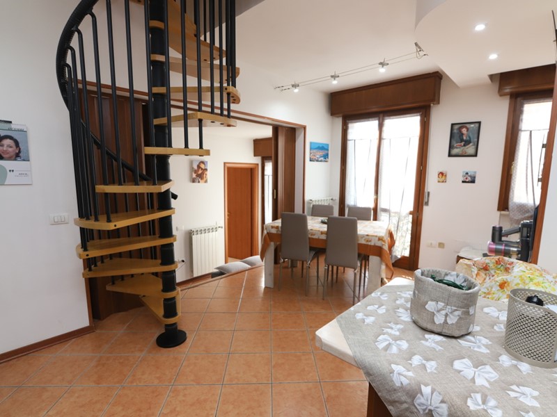 Proponiamo nella località di Sant'Ansovino, Saludecio, grazioso appartamento situato al primo piano di un complesso immobiliare di poche unità. Varcata la soglia di casa, veniamo accolti nella calda cucina, subito a seguire un bel salottino per godersi un po' di tranquillità dopo una lunga giornata di lavoro. Completa il piano un bagno con box doccia. Per accedere alla zona notte, mansardata, saliamo la scala che conduce al disimpegno, per spostarci poi verso la camera da letto matrimoniale, la cameretta e l'ulteriore bagno con vasca. A completare la proprietà abbiamo un posto auto sul retro e un garage utile per riporre un ulteriore mezzo oppure oggetti personali. L'appartamento, insieme all'intero complesso, risale ai primi anni del Duemila e si trova su una strada poco trafficata, con i servizi essenziali a pochi minuti di distanza, così come per raggiungere le principali zone vicine, quali Morciano e San Giovanni. Per ulteriori informazioni o per eventuali appuntamenti, potete contattare l'ufficio di Morciano al numero 0541 85 80 82.