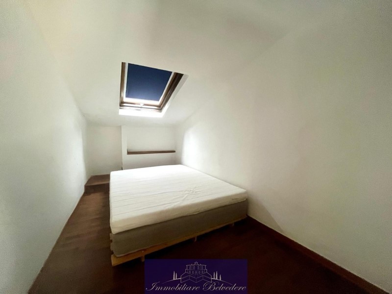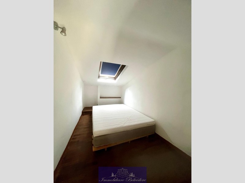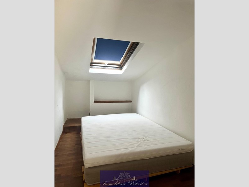 In piacevole contesto residenziale, in strada interna e silenziosa lontana dal traffico cittadino, IMMOBILIARE BELVEDERE propone in affitto luminoso appartamento (40 mq ca) situato al primo ed ultimo piano, sviluppato su due livelli composto da: ingresso, soggiorno, angolo cottura, camera da letto matrimoniale con servizio finestrato oltre a pratico guardaroba. L'immobile si presenta in ottime condizioni interne, gode di doppia esposizione con piacevoli affacci ed è dotato di piano cottura in pietra, pavimenti in parquet e travi a vista. Termosingolo classe energetica G. Contratto proposto transitorio 12 mesi, richieste massime garanzie.