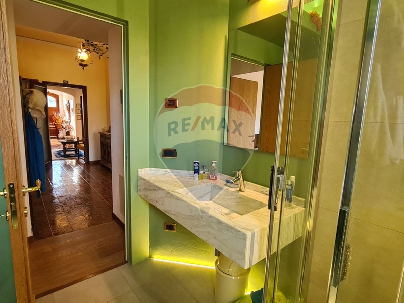 Un primo soggiorno ci accoglie sul lato sinistro, con accesso ad ampia terrazza, adiacente ulteriore soggiorno, dove è possibile ricavare uno studio qualora sia necessario, cucina con sala da pranzo si distribuiscono sul lato destro, con doppio accesso alla terrazza, adatta ad ospitare pranzi e cene all'aperto, tre camere, di cui una ampia matrimoniale con balcone che affaccia sul retro della proprietà, ulteriore camera matrimoniale e camera singola con balcone, doppi servizi finestrati con rifiniture di pregio e ben curati: questi gli ampi spazi che compongono il piano principale.