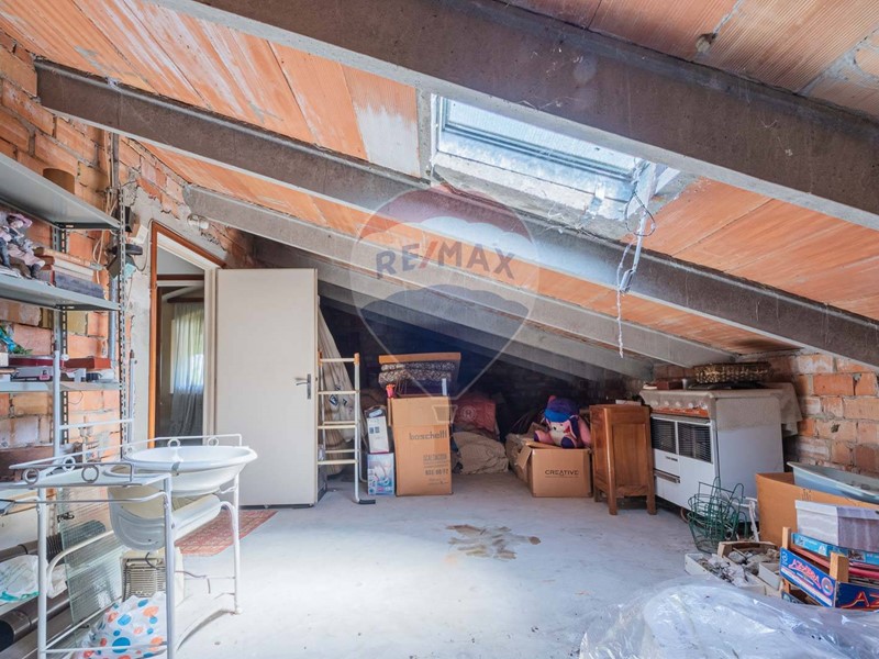 Al secondo piano si trovano i locali sottotetto che si estendono per tutta la larghezza della casa. Questi ambienti, attualmente al grezzo, offrono un grande potenziale di personalizzazione e ampliamento, sia per esigenze abitative che come zona studio, relax o hobby.