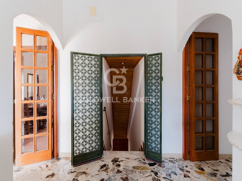 La vera anima di questo livello si rivela nel giardino interno: unoasi di quiete e riservatezza, circondata da alberi di agrumi e melograni, dove la pietra incontra il verde in una fusione armoniosa di natura e architettura. Questo spazio esterno, autenticamente mediterraneo, si presta a molteplici interpretazioni: da salotto en plein air a giardino dinverno, da zona relax a piccolo orto aromatico privato. Una scala esterna in pietra consente di accedere direttamente al piano superiore, offrendo una seconda via di collegamento tra i due livelli., oltre alla scala interna.
