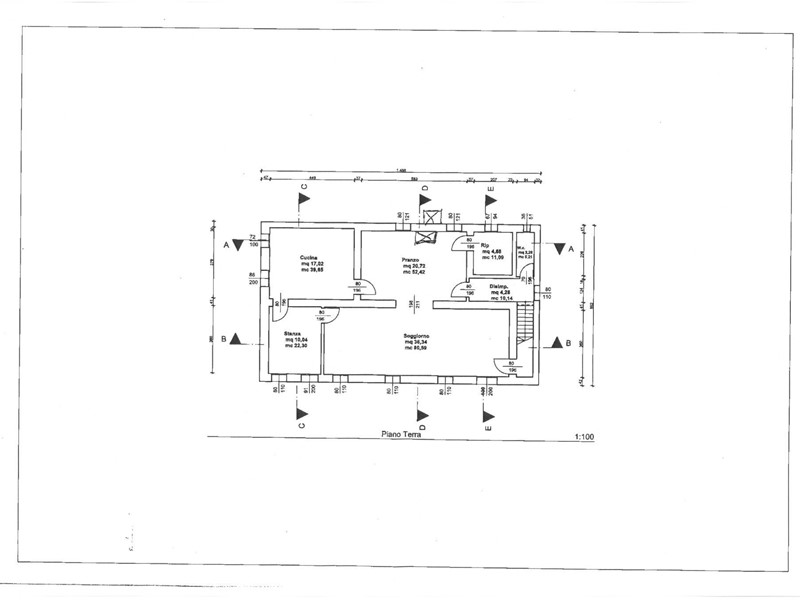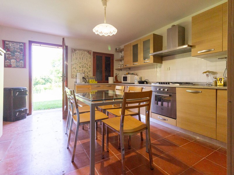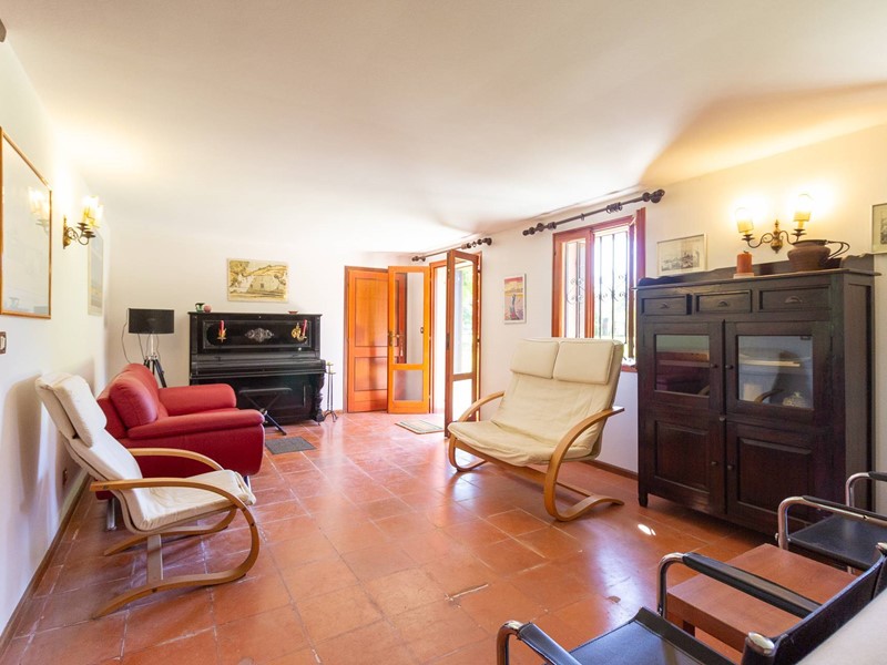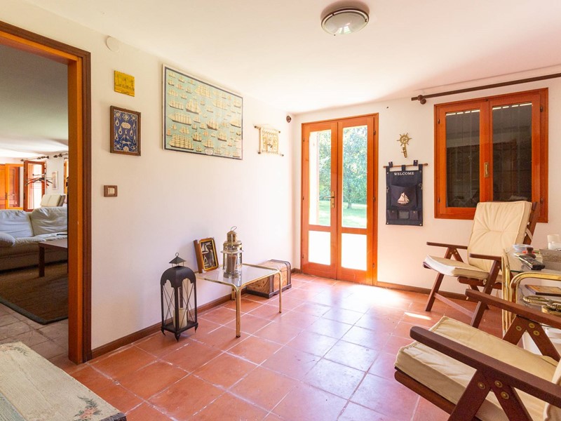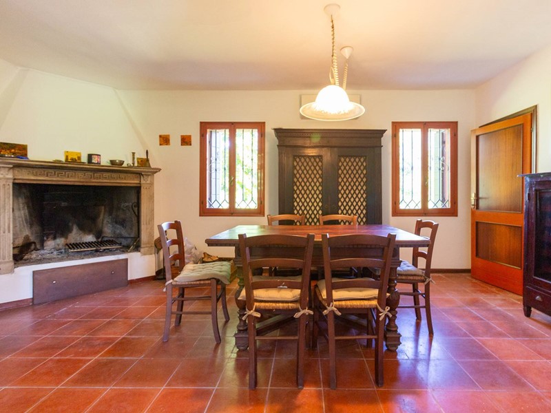 PT ingresso/stanza, cucina abitabile di mq. 17 con adiacente sala da pranzo con caminetto di mq. 21 e soggiorno di mq. 37, 2 ripostigli, bagnetto;