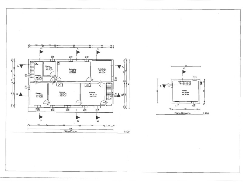 P1 3 camere matrimoniali , un bagno, 2 stanze pluriuso;