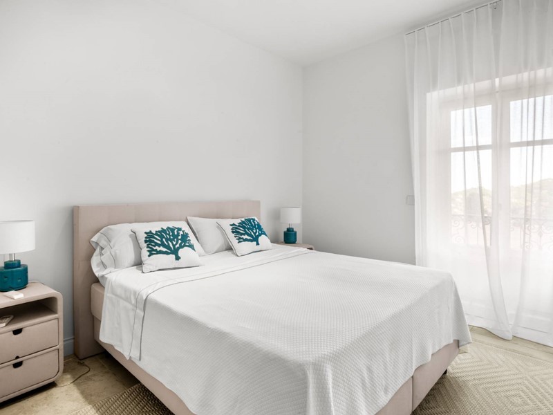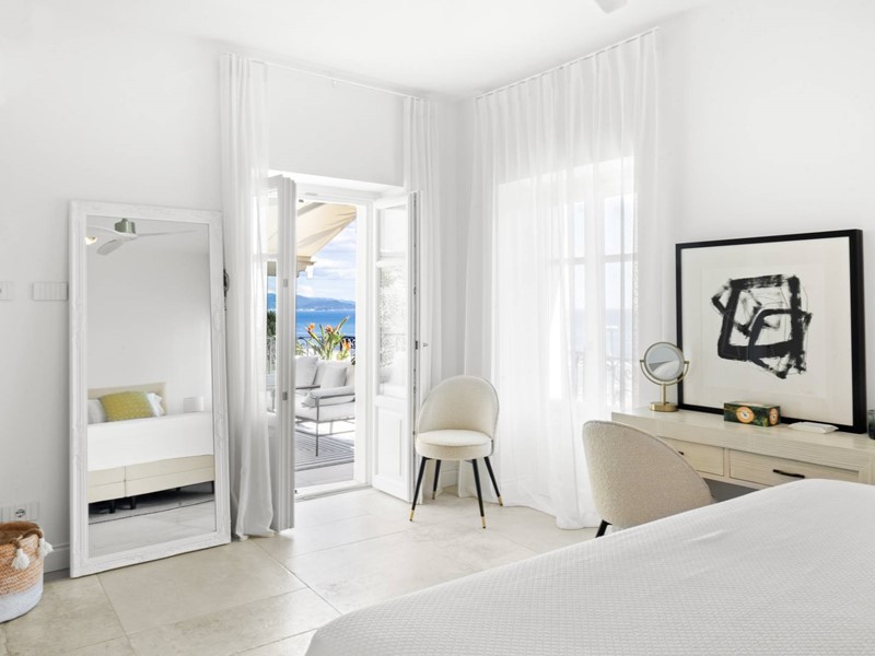 Salendo al primo piano si accede alla zona notte, composta da tre camere da letto spaziose, tra cui la suite padronale che gode di unuscita su un ampio terrazzo con vista panoramica del mare e su un balcone condiviso con una seconda camera. La camera principale dispone di un bagno privato situato proprio di fronte, mentre per le altre stanze sono presenti un bagno con grande doccia e un ulteriore servizio con WC separato.