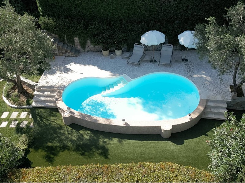 La villa è circondata da un ampio giardino privato, curato nei minimi dettagli e progettato per garantire la massima privacy. La piscina panoramica, con vista aperta sul mare, è dotata di lettini, ombrelloni e aree relax, mentre le terrazze sia coperte che scoperte sono arredate con mobili da esterno di alta gamma, ideali per vivere momenti di relax allaria aperta in ogni periodo dellanno.