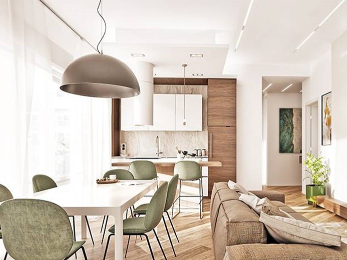 Internamente l'appartamento sarà composto da ampio ingresso con zona lavanderia, ampio soggiorno con angolo cottura ed accesso al balcone, ampia camera padronale con accesso al balcone, bagno finestrato, seconda camera con accesso al balcone.