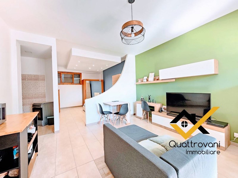 ingresso su luminosa zona giorno, con angolo cottura a vista, impreziosita da ampia porta a vetri prospicente il giardinetto di pertinenza esclusiva, camera matrimoniale parzialmente disimpegnata, bagnetto con doccia, angolo lavanderia interno.