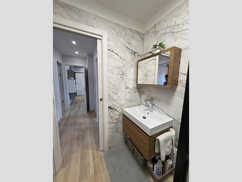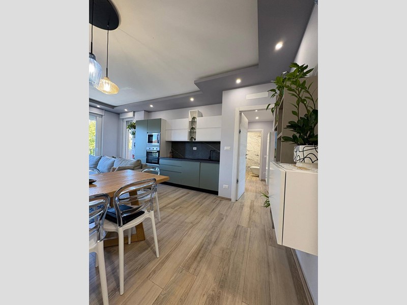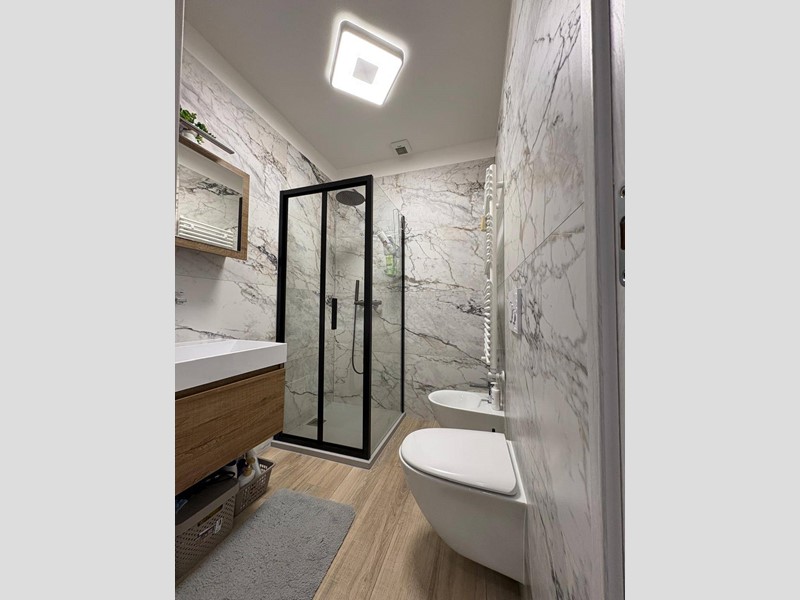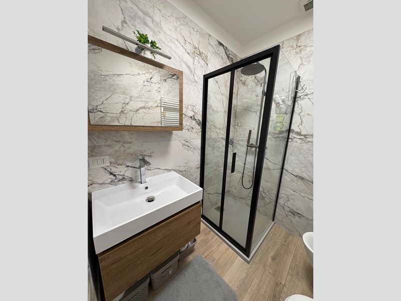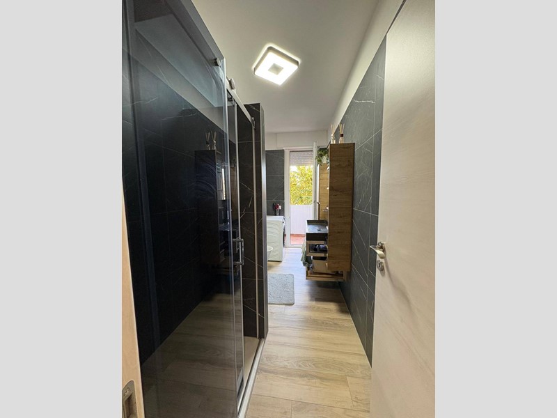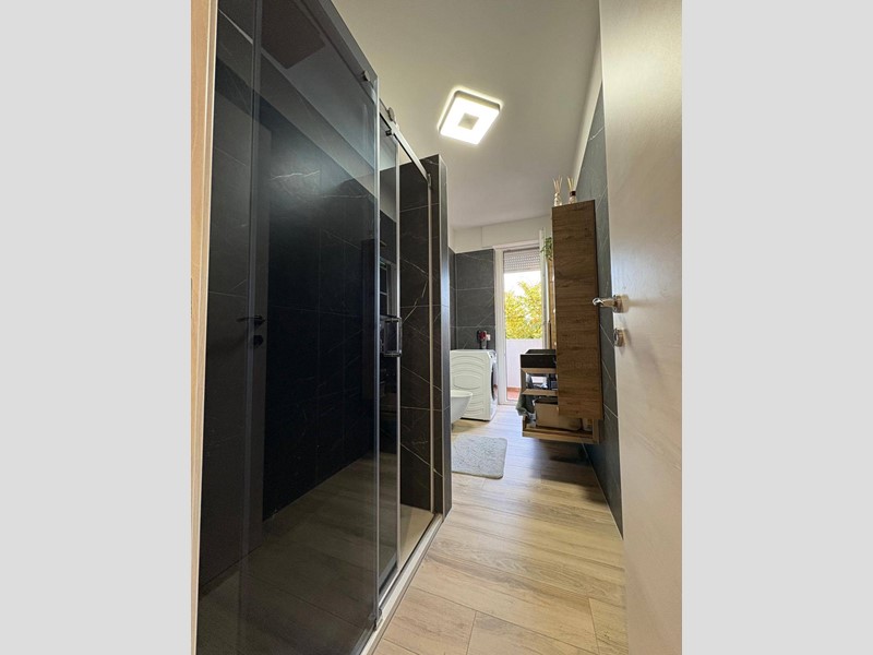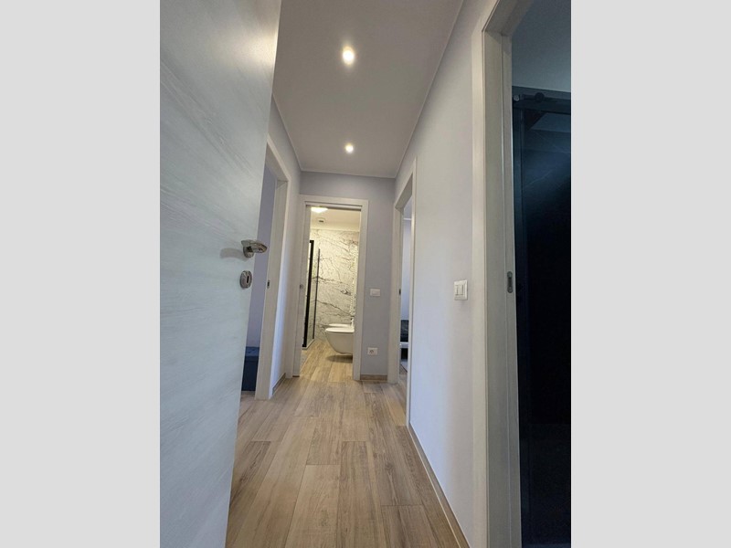 l'appartamento è stato completamente ristrutturato di recente con scelte di finiture e materiali di pregio, sono state apportate migliorie quali: impianto elettrico ed idraulico completamente rinnovati con certificazioni, serramenti doppi vetri in pvc di alta qualità, porta blindata, tapparelle totalmente elettriche, pavimento gress porcellanato effetto legno, bagni con lavandino e doccia su misura.