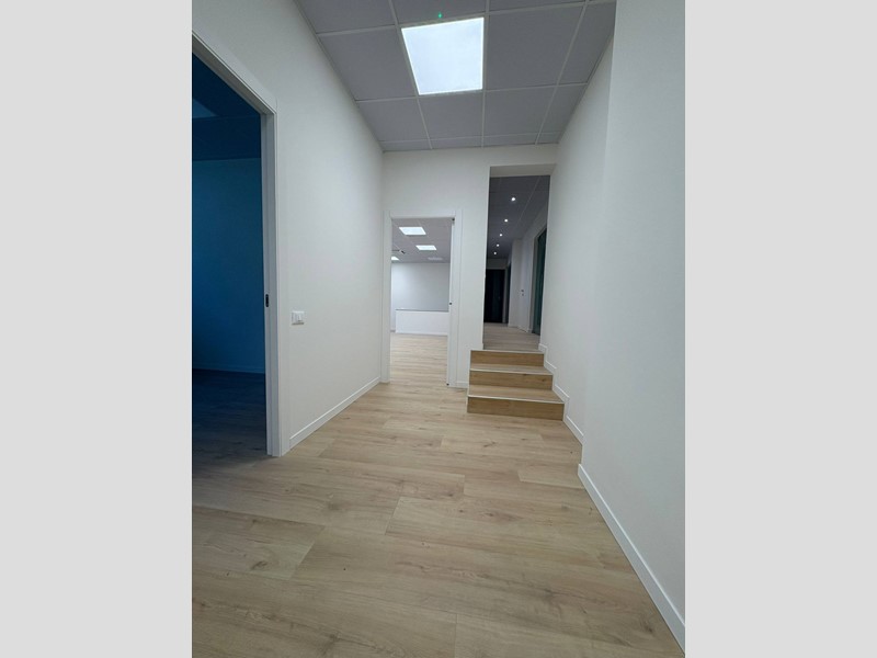 l'ufficio si sviluppa su due livelli distribuiti per circa 300mq l'uno tra piano terra e piano seminterrato, il piano terra esposto a nord-est garantisce un'ottima esposizione alla luce naturale.