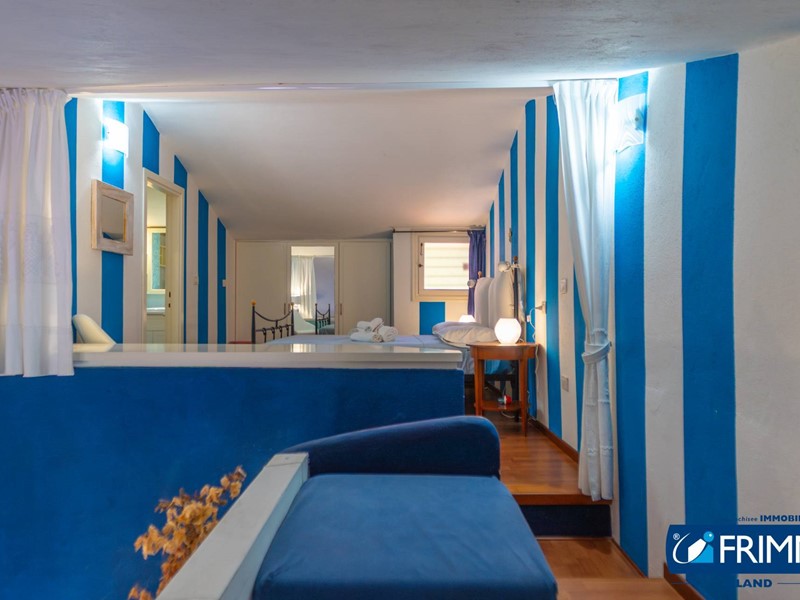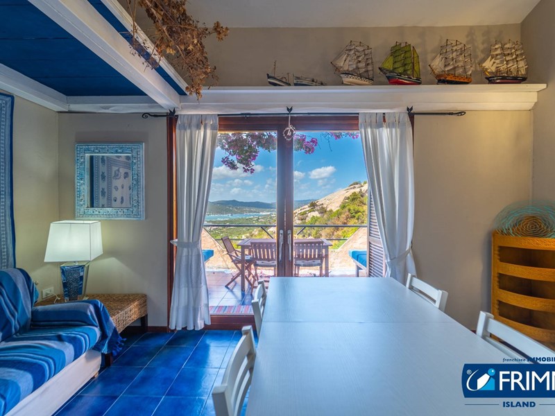 L'appartamento invece è così diviso: al primo piano troviamo una camera da letto matrimoniale, un bagno completo e finestrato ed un cucinotto. Rivolto verso il mare troverai un'ampia sala con uscita in terrazza, dalla quale si gode di una emozionante vista mare sul Golfo di Cugnana e Porto Rotondo, una scala interna ci porta al piano superiore soppalcato, realizzato con gusto e stile dove troviamo un'altra camera da letto, anch'essa matrimoniale con bagno en suite.