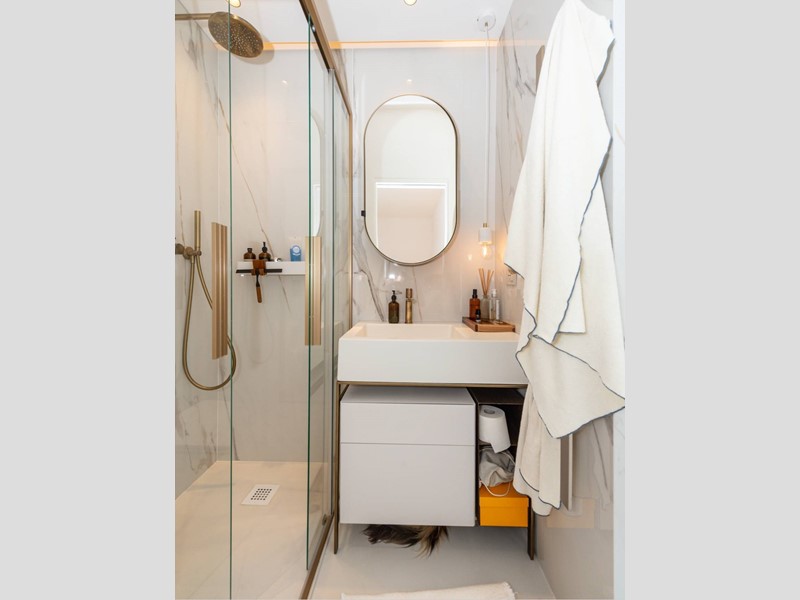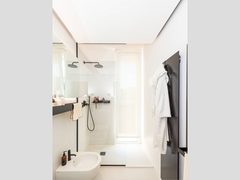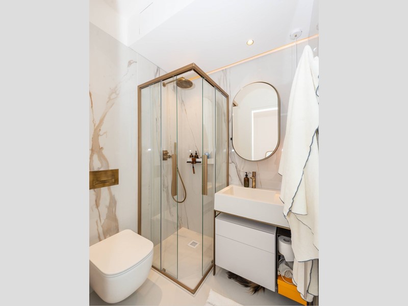 Bagno principale moderno, con doccia walk-in e finiture di qualità.