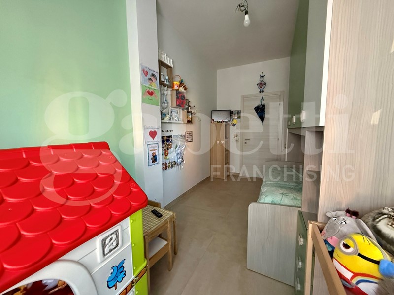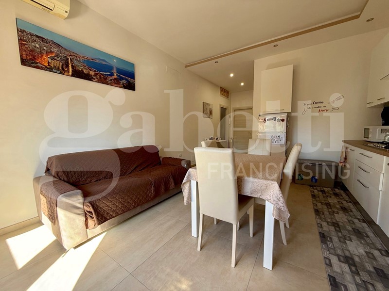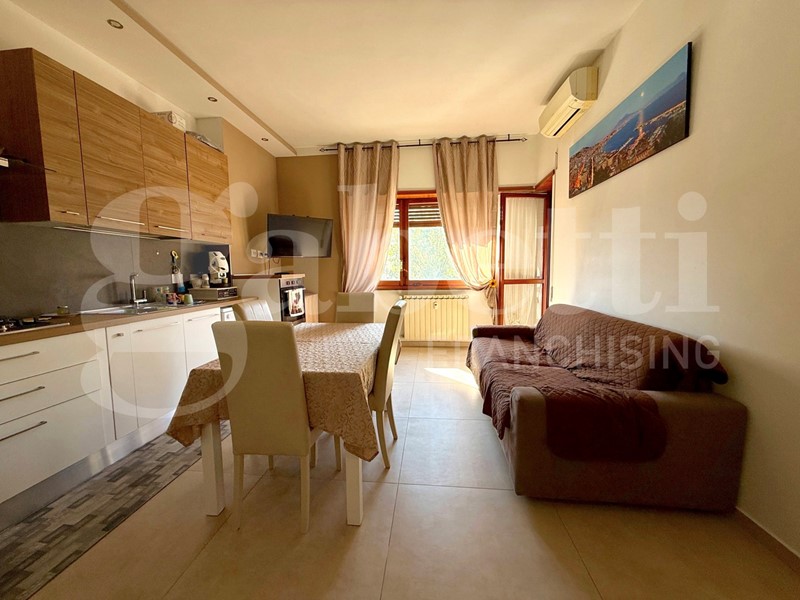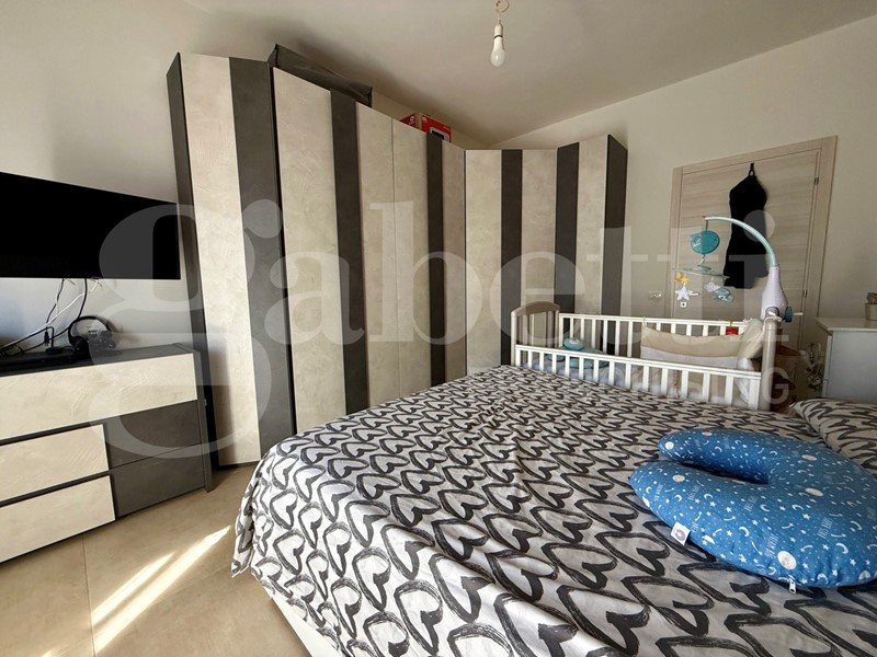 L'immobile è così composto: Ingresso su ampio soggiorno e cucina open-space, con accesso al terrazzo, 1 Ampia Camera singola, con accesso a ulteriore terrazzo, Disimpegno, Ripostiglio, Camera matrimoniale e Bagno finestrato