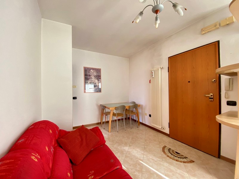 L'ingresso si apre su un ambiente open space che unisce salotto e angolo cottura, ideale per chi desidera spazi moderni e funzionali.