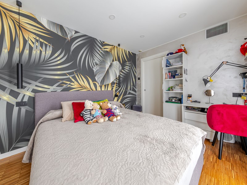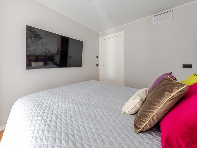 L'appartamento, posto al secondo piano con doppia esposizione, presenta le seguenti finiture: porta blindata, pavimenti in parquet, riscaldamento centralizzato con contabilizzatori di calore, impianto di raffrescamento e ventilazione meccanica controllata (VMC), infissi con doppi vetri, impianti completamente rifatti e certificati.