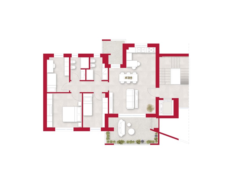 Gli spazi esterni con balconi e terrazzi generosi di circa 15 mq, ampliano la vivibilità, offrendo opportunità per attività domestiche cene e pranzi all'aperto.