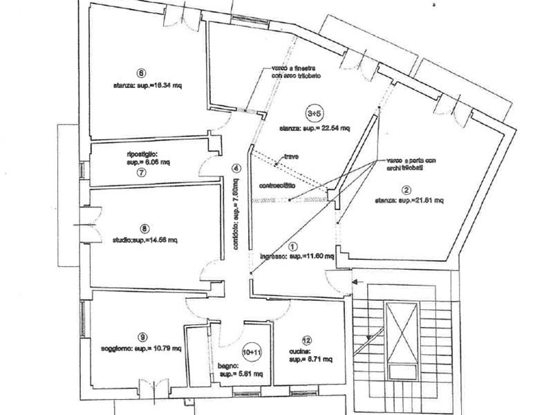 Piazzetta Bagnasco  -  Luminoso appartamento in pieno centro, 5 vani oltre accessori mq 125 c.a. poso al 6° piano in stabile d'epoca di 7. Composto da: ingresso su disimpegno, grande salone, studio, 3 camere da letto, cucina semi abitabile ed un wcb, 5 balconi, tripla esposizione.