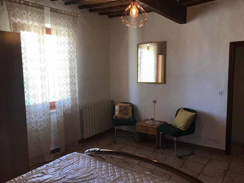 Asciano, vicino ai servizi principali, appena fuori dal centro storico, appartamento con ingresso singolo da scale privata interna, al piano primo, in buonissime condizioni, di 80 mq circa su due livelli composto da: ingresso con ampio disimpegno con grande camino e accesso ad terrazzino, soggiorno, wc, cucina abitabile e ripostiglio, piano superiore due camere matrimoniali e bagno finestrato.