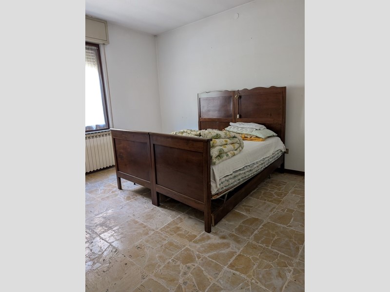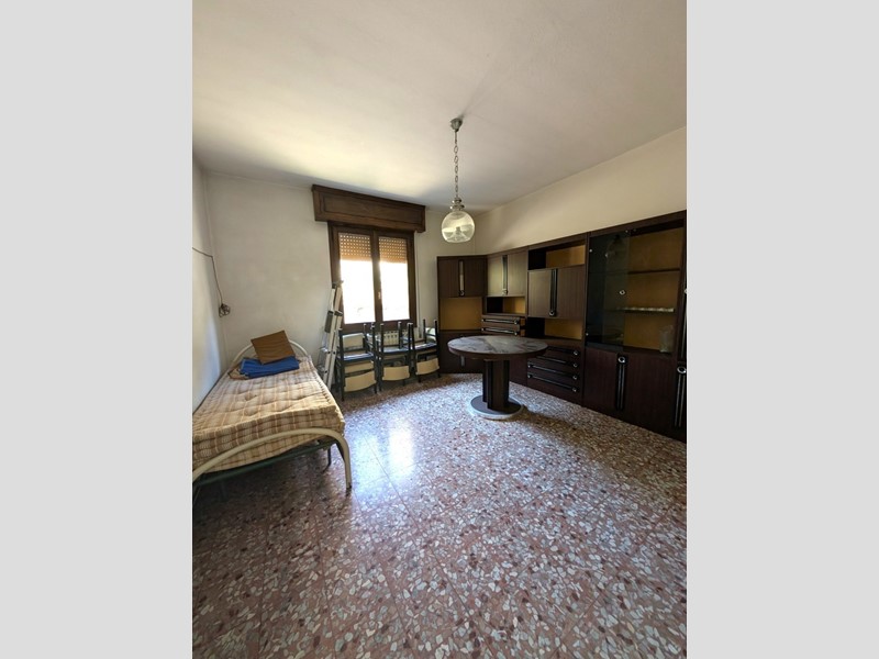 La struttura, risalente al 1956, necessita di ristrutturazione, ma il tetto è stato rifatto negli anni '90 e si presenta in buone condizioni. L'interno è caratterizzato da un ampio corridoio che conduce alle varie stanze, mentre una scalinata interna porta alla grande sottotetto aperto, dove è presente anche una stanza adibita a servizio.