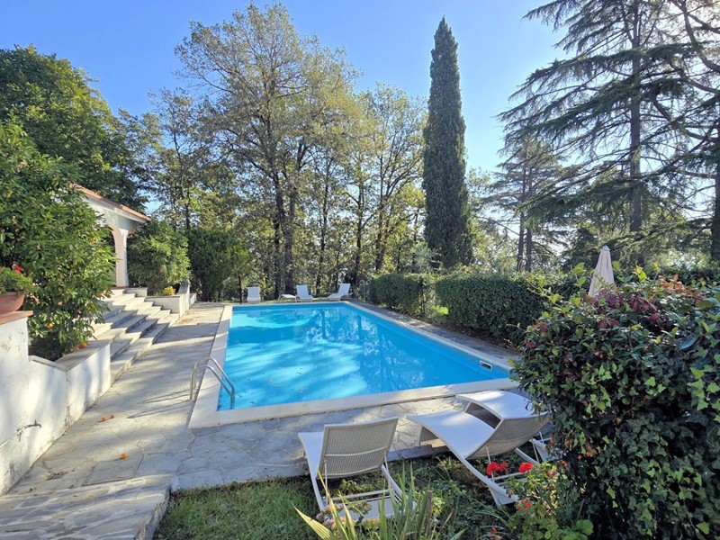 Nel giardino cè la piscina recintata ad uso esclusivo, che misura 10 x 5 con una profondità da 1 a 3 metri . Nella proprietà è compreso anche il garage e il terreno intorno all abitazione attualmente censito come area urbana della casa . L accesso alla proprietà avviene attraverso una piccola strada facilmente percorribile che finisce alla villa .