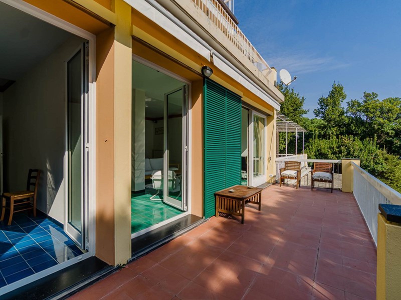 Arenzano, Via della Torretta, all'interno dell'incantevole Pineta, esclusivo appartamento con terrazzo panoramico, a pochi passi dal Portichetto e dalla funicolare che collega direttamente alla splendida spiaggia di Marina Piccola.
