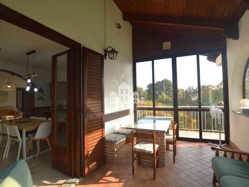 In posizione esterna e tranquilla, in Frazione Lombarnero a meno di due chilometri dal centro del paese. La proprietà è totalmente indipendente, circondata dall'ampio terreno privato che ne garantisce privacy e respiro, ed è raggiunta dalla strada asfaltata rendendola accessibile tutto l'anno. Dal porticato sul giardino privato si accede alla zona giorno. L'ingresso è living sul soggiorno comunicante con la cucina attraverso un'apertura ad arco, quest'ultima affaccia sulla piacevole veranda chiusa e sfruttabile tutto l'anno. Dal soggiorno accogliente, impreziosito dal caminetto, si accede al disimpegno che anticipa il primo bagno, dotato di vasca, e alla prima camera. Esternamente è presente la scala coperta e riparata che conduce al piano superiore. Questo è composto da due ulteriori camere spaziose che condividono l'affaccio sul balcone, e il secondo bagno, sempre con vasca. Sia esternamente che internamente dalla scala a chiocciola sul soggiorno, si raggiunge il piano seminterrato. Qui sono presenti la doppia tavernetta con cucina a vista servita dal bagno, oltre ai due box auto adiacenti. Nel 2024 è stata sosituita la caldaia. Esternamente la casa è circondata dal modesto appezzamento di terreno che è l'ideale per avere uno sfogo all'aperto, senza incombere in un grande impegno di tempo per mantenerlo in ordine.