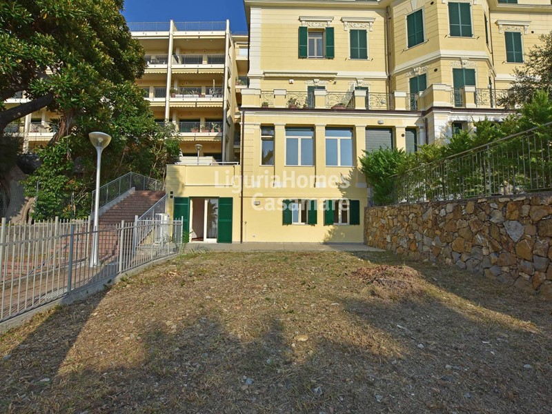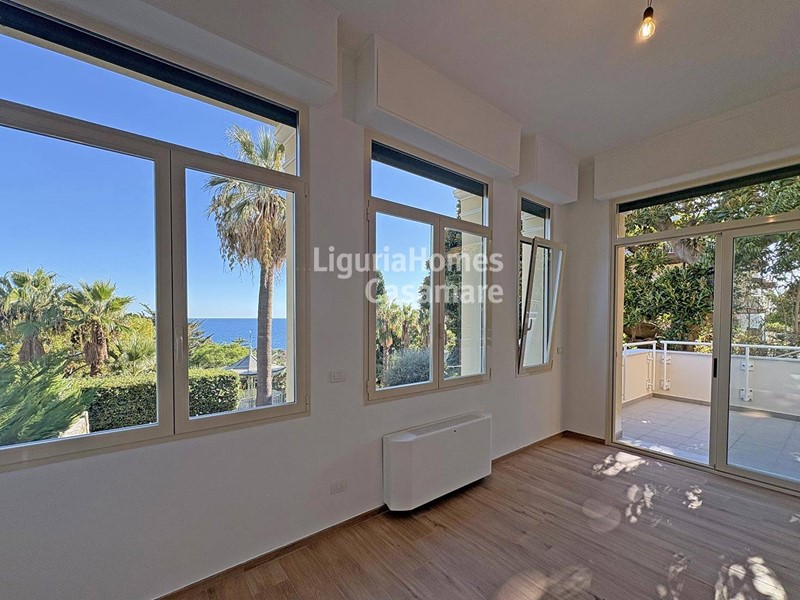 Appartamento quadrilocale ristrutturato con vista mare e giardino privato in vendita a Sanremo.