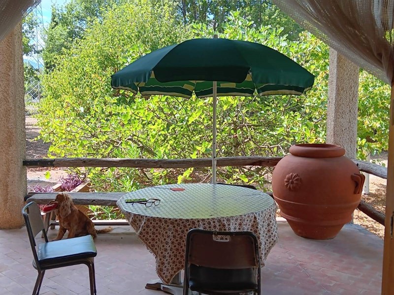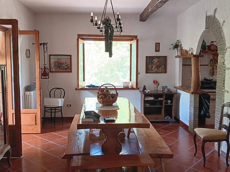 La casa è circondata da un giardino recintato di circa 3000 mq e un terreno adibito a bosco ceduo e frutteto di circa 6000 mq all'interno del quale troviamo un piccolo casolare/cantina in pietra di circa 30 mq.