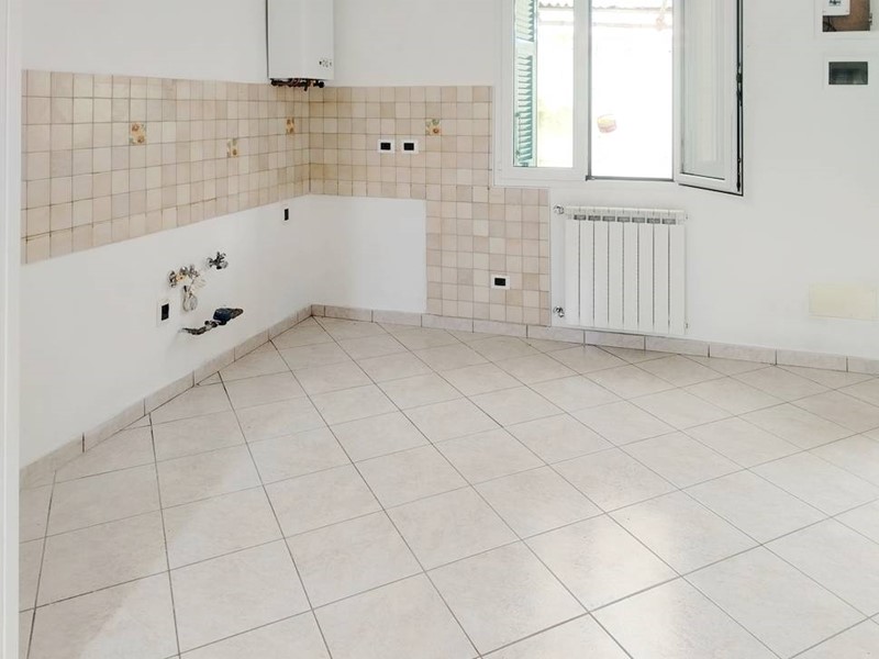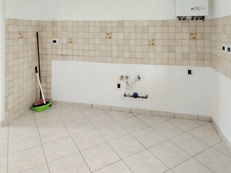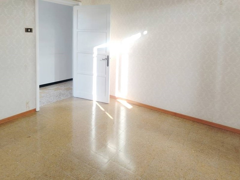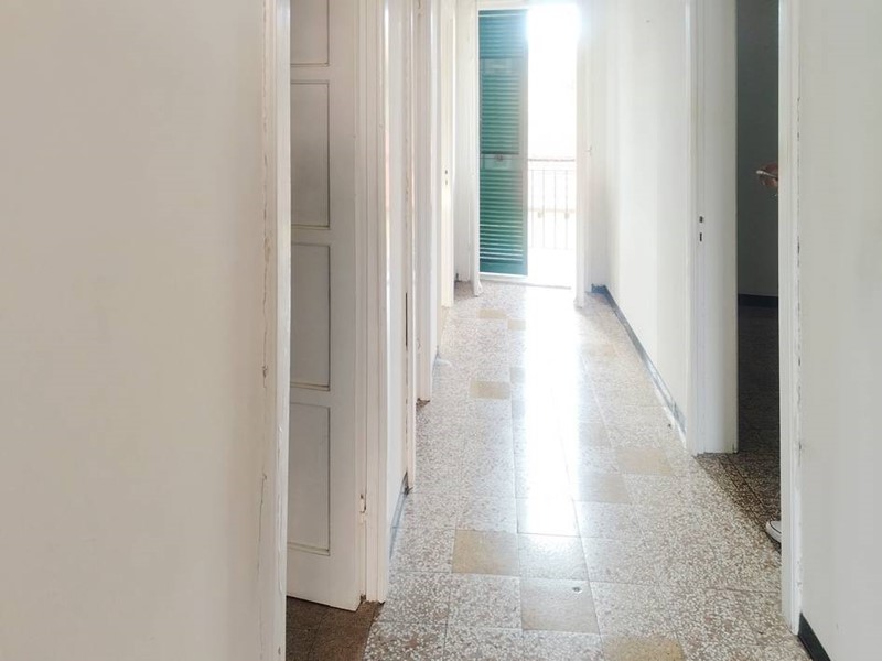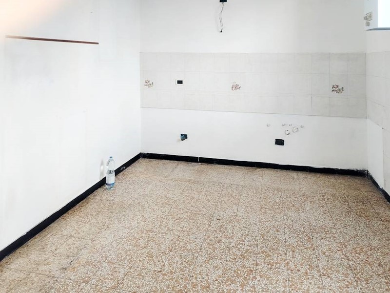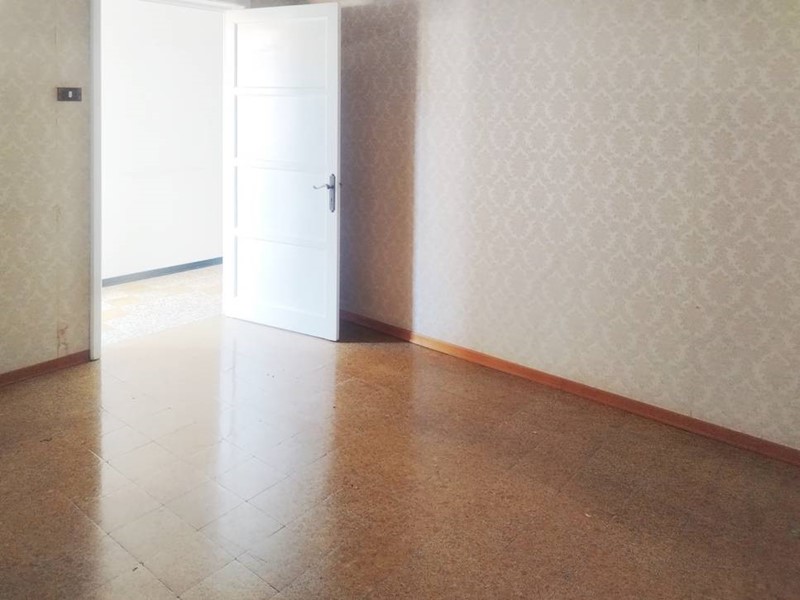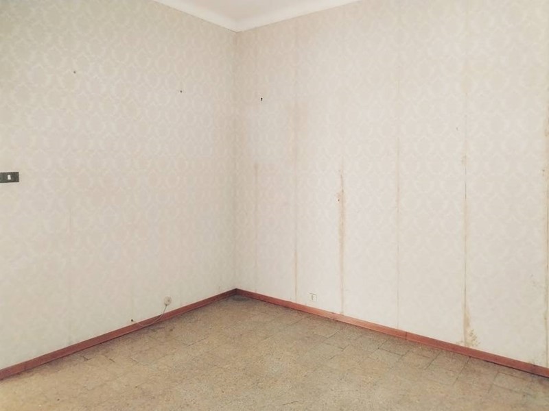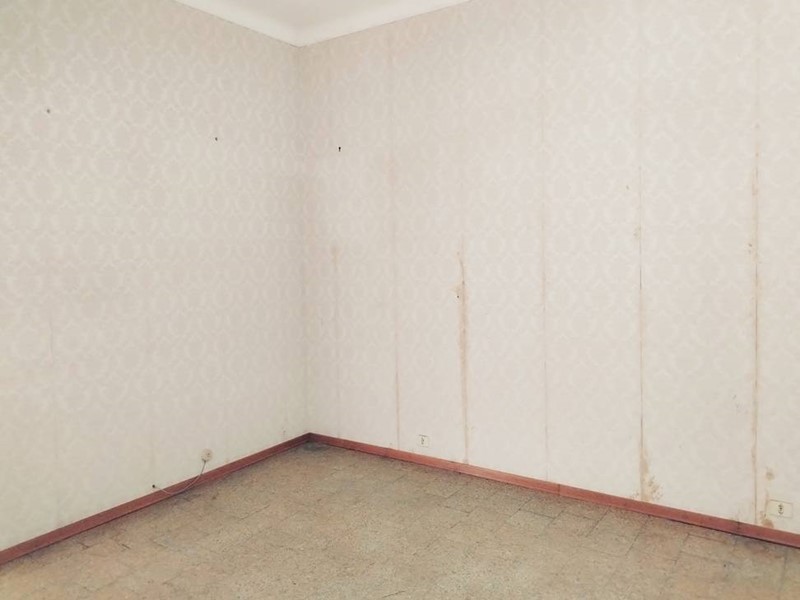 Primo piano: appartamento da ristrutturare, che oggi mantiene la suddivisione classica tra sala e cucina.
