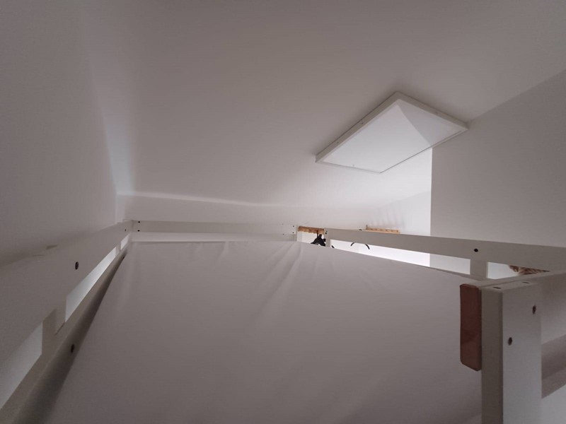 Salendo al piano superiore, la camera matrimoniale offre un rifugio intimo, mentre la cameretta è perfetta per ospitare amici o come studio.