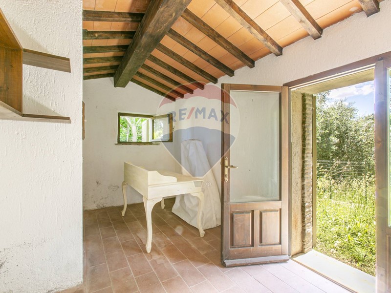 The eat-in kitchen, a true culinary gem, is the heart of the home, where the aroma of traditional Tuscan dishes mingles with the flowers of the surrounding private garden. Completing this idyllic setting is a vast plot of land surrounding the farmhouse, perfect for those who wish to immerse themselves in nature and live in complete tranquility.