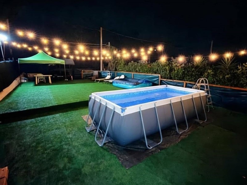 Lo spazio esterno è in parte pavimentato perfetto per il parcheggio delle auto, in parte allestito con giardino sintetico, ideale come area relax o zona giochi per bambini, con la possibilità di installare una piscina gonfiabile o un gazebo.