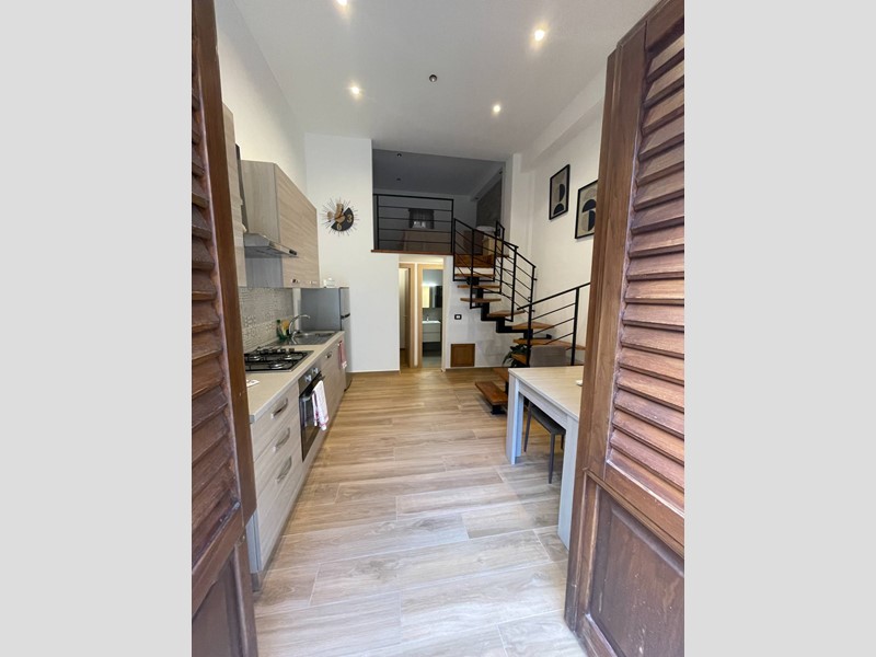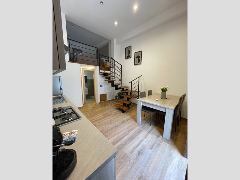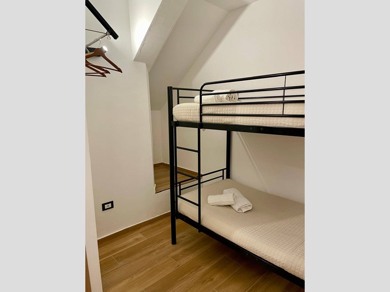 Al piano terra, un appartamento luminoso con ampia zona giorno, camera da letto con soppalco, cameretta e bagno con doccia: uno spazio ideale per famiglie o per ospitare amici.