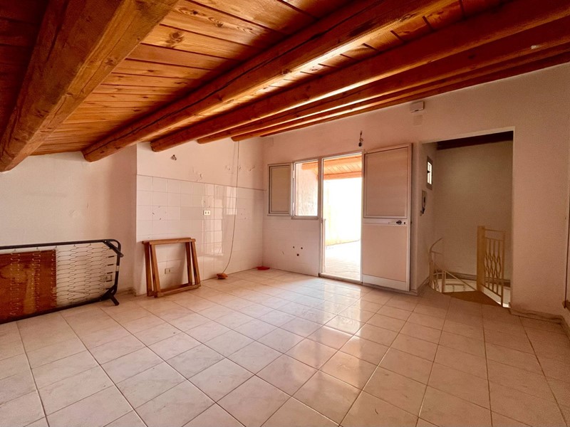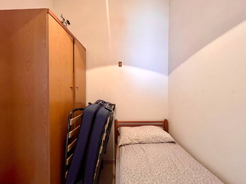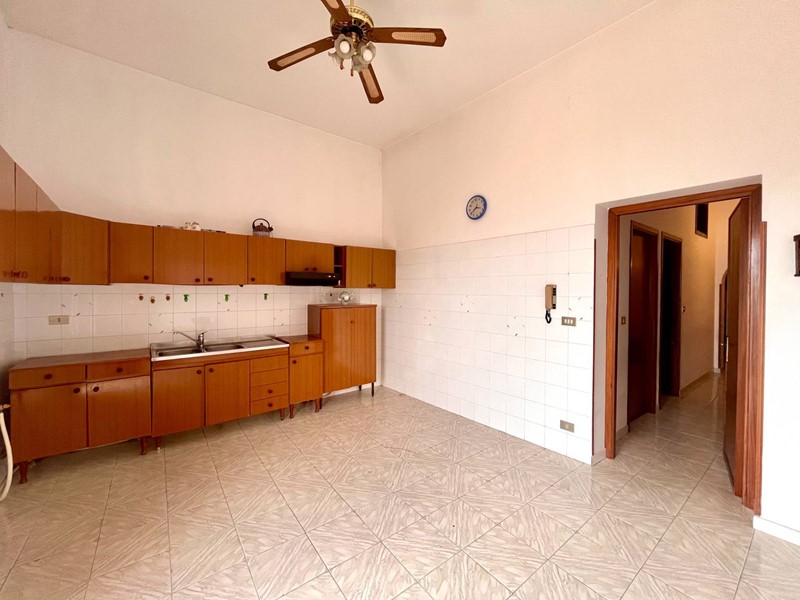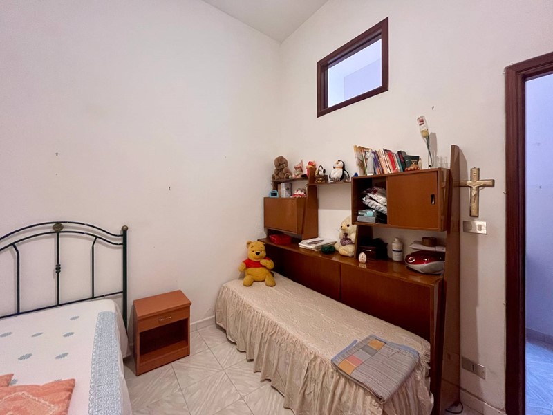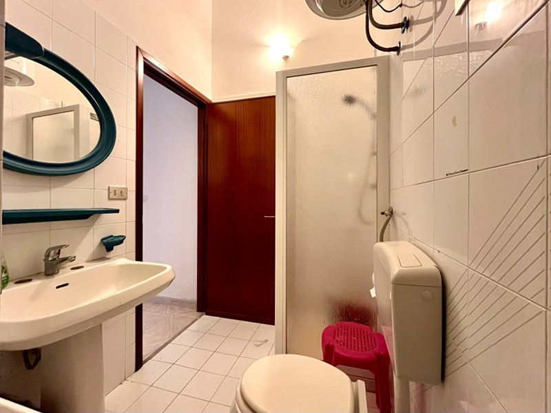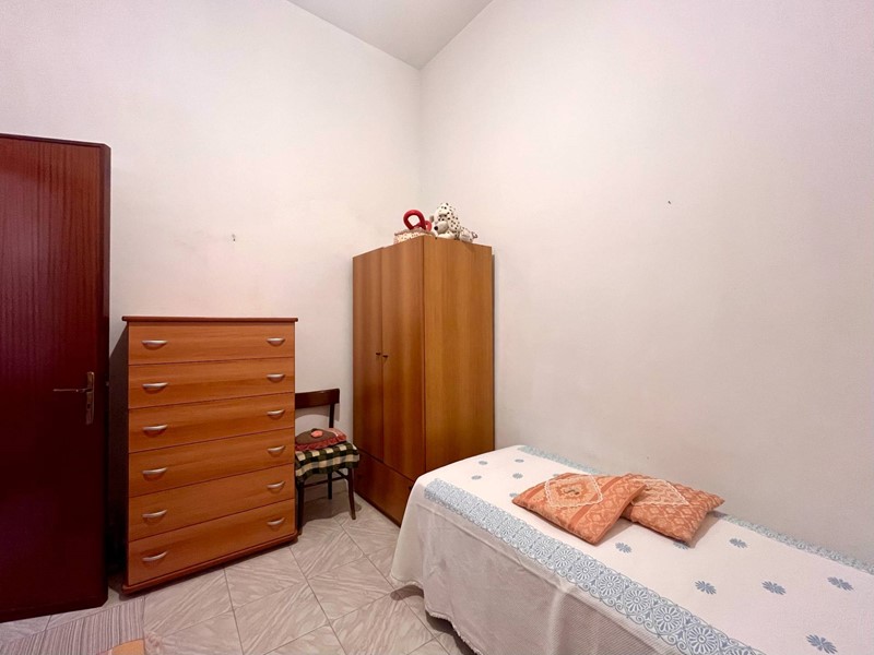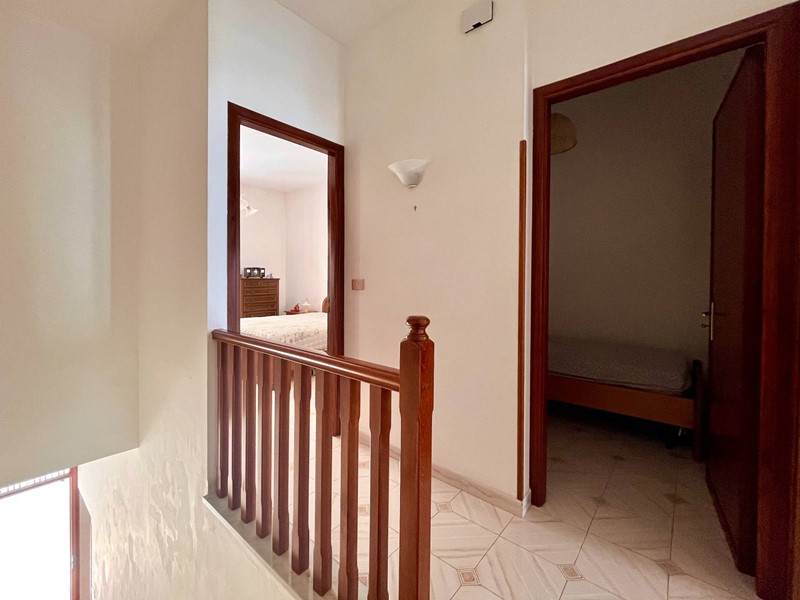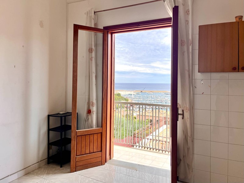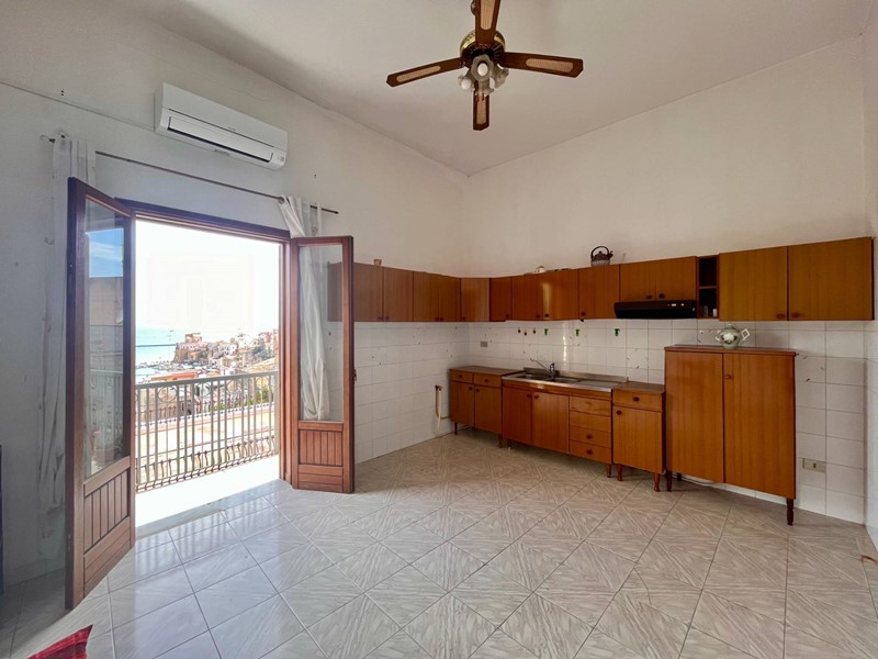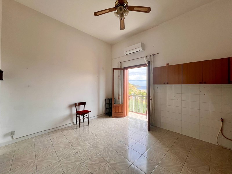 Al piano terra, possiamo accedere sia tramite persiana che dal portone principale, dove troviamo ingresso su soggiorno, disimpegno, bagno, riposto, cameretta e cucina con accesso sul balcone vista mare.