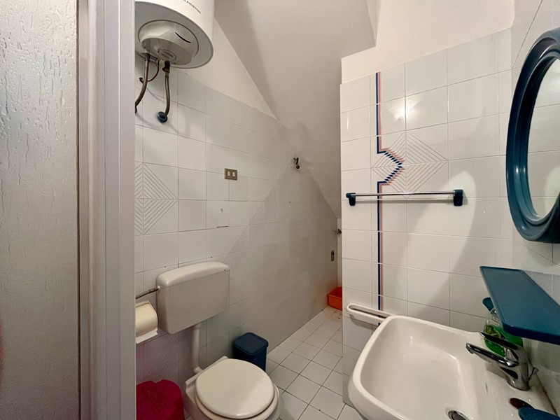 Attraverso la scala a chiocciola si accede al secondo piano mansardato, dove troviamo un bagno e un ampio terrazzo con vista sul porto turistico.