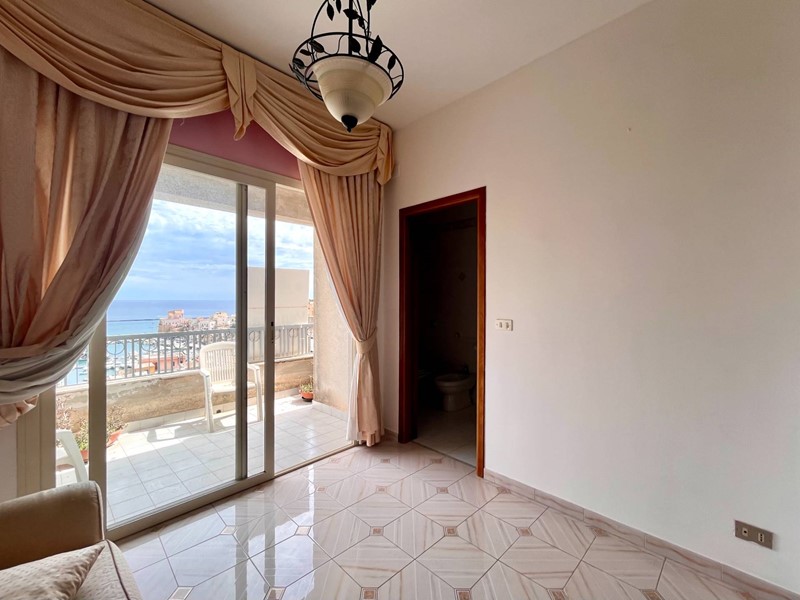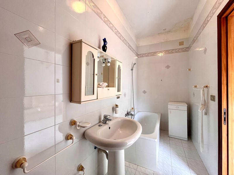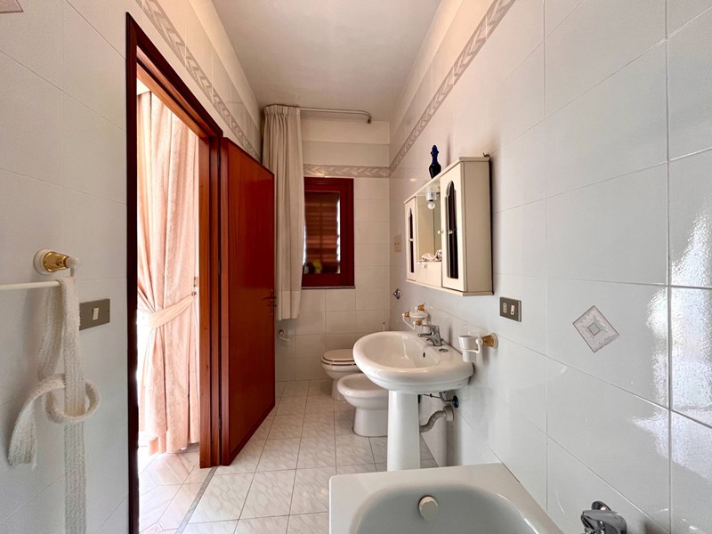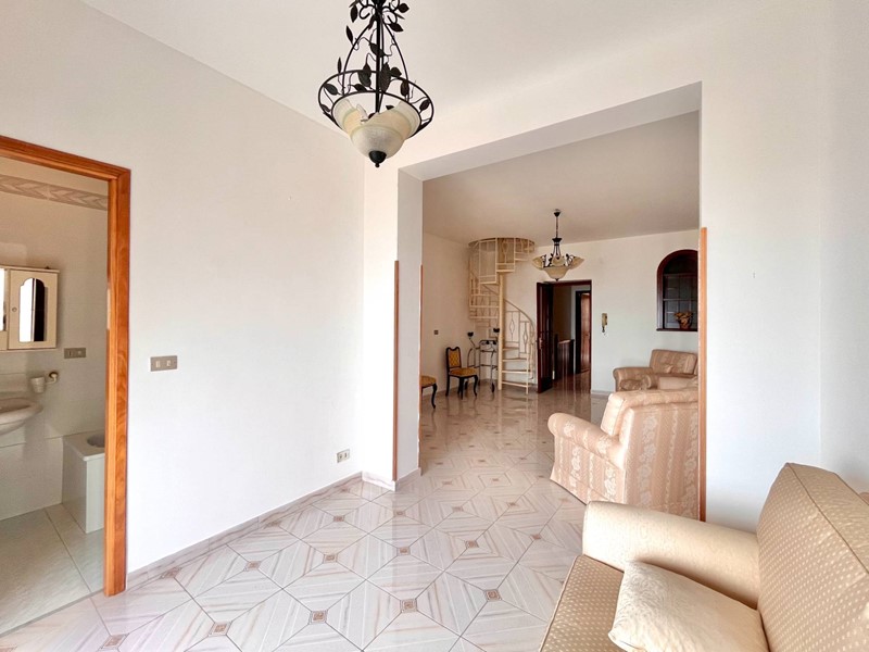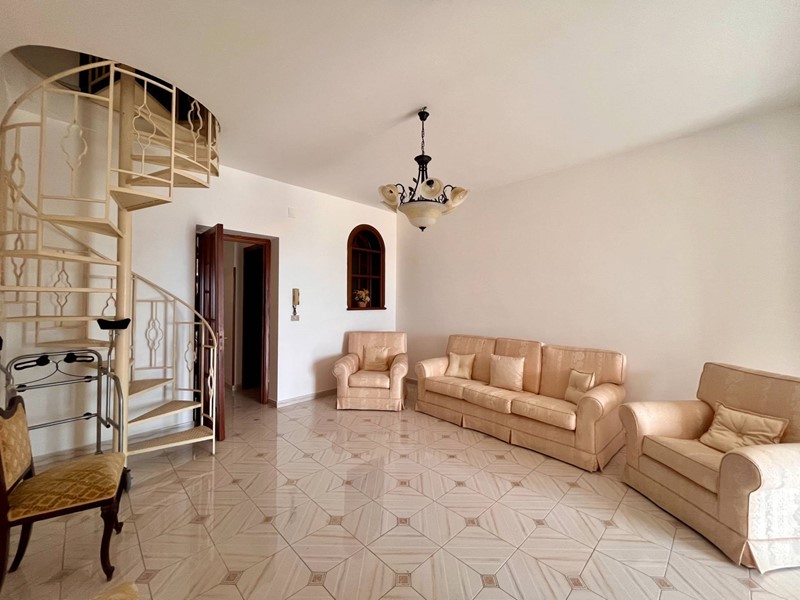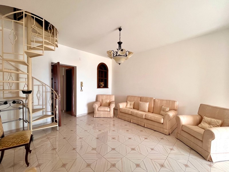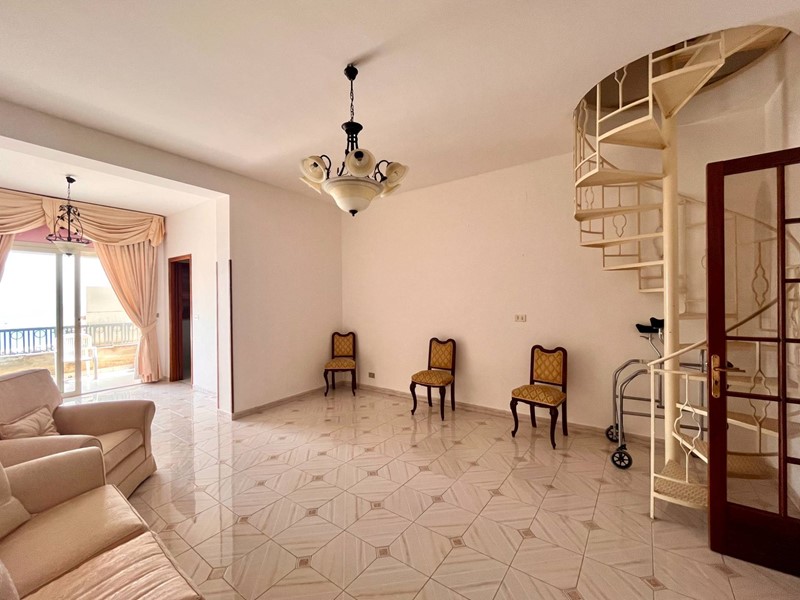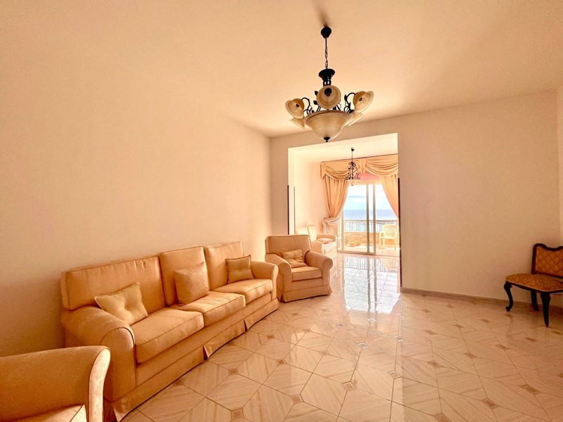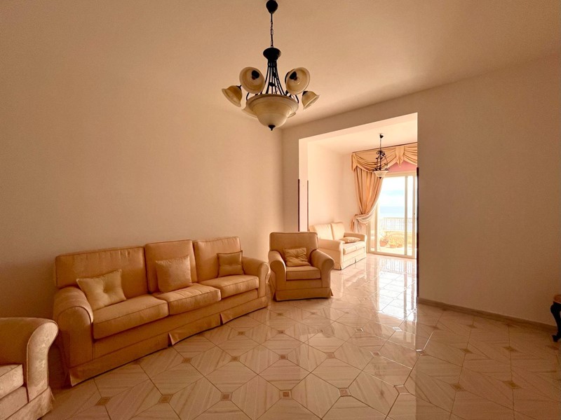 Tramite scala in marmo accediamo al primo piano composto da un ampio salone, cucina con veranda vista mare e sulla villa comunale, bagno, disimpegno, riposto e camera da letto con balcone.