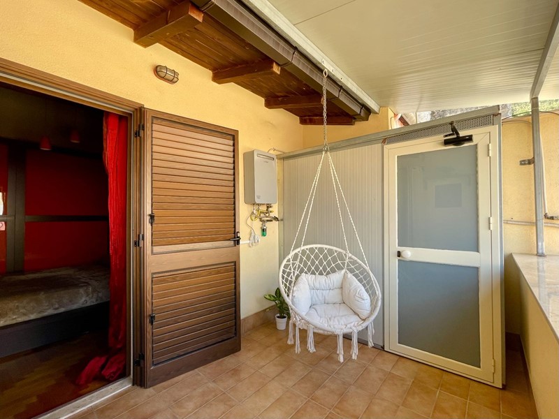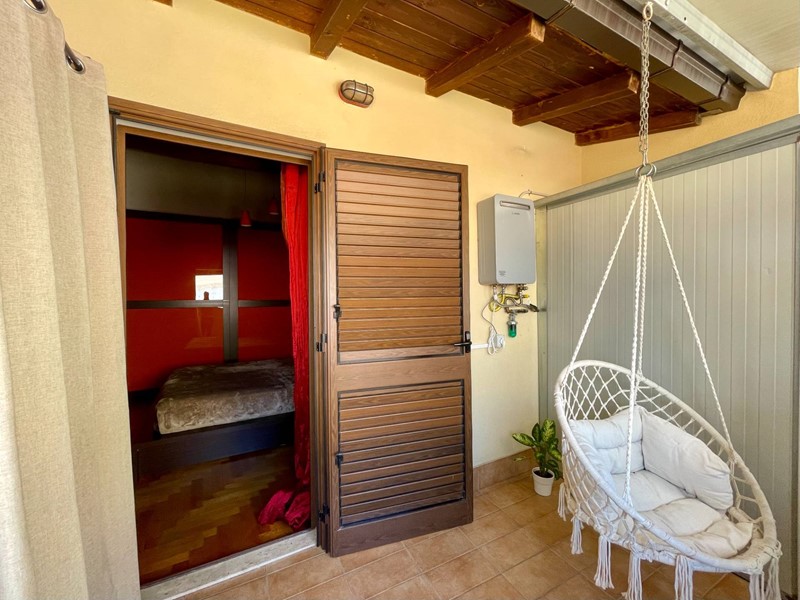 Il piano terra è composto da un'ampia cucina, un soggiorno e un bagno. Attraverso una scala interna, si accede al primo piano, dove si trova un disimpegno che conduce a un riposto e a due camerette, di cui una è provvista di balcone.
