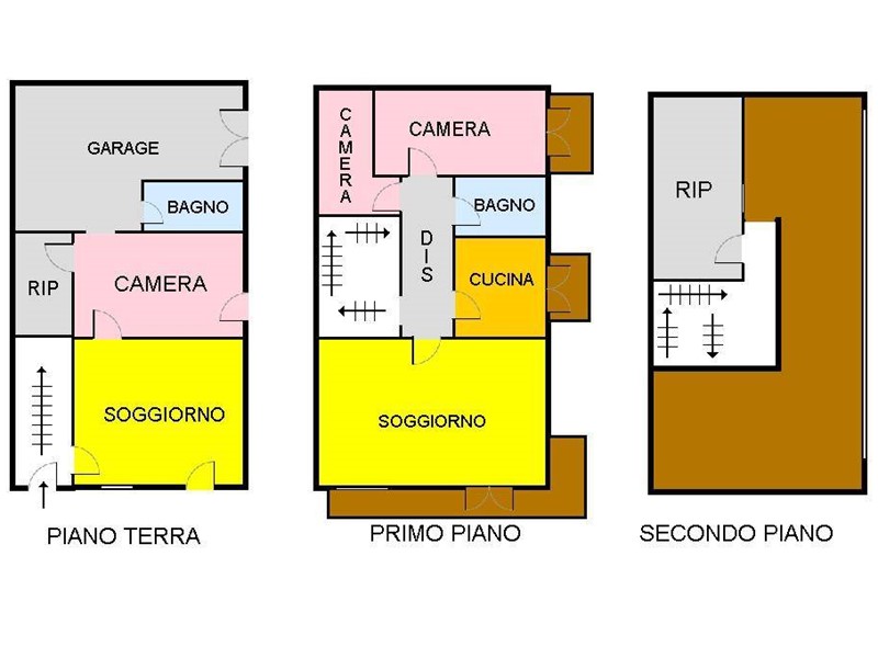 Il piano terra è composto da cucina-soggiorno, camera da letto, riposto, bagno e garage. Attraverso scala interna in marmo possiamo accedere al primo piano composto da ampio soggiorno, cucina, camera da letto con balcone, disimpegno, cameretta e bagno, il secondo piano si presenta con riposto e ampio terrazzo vista mare sul Golfo di Castellammare.
