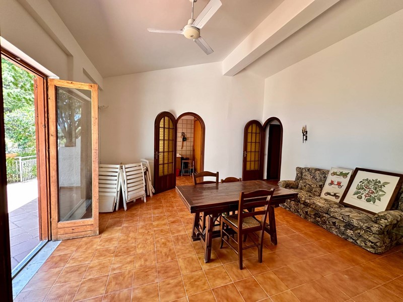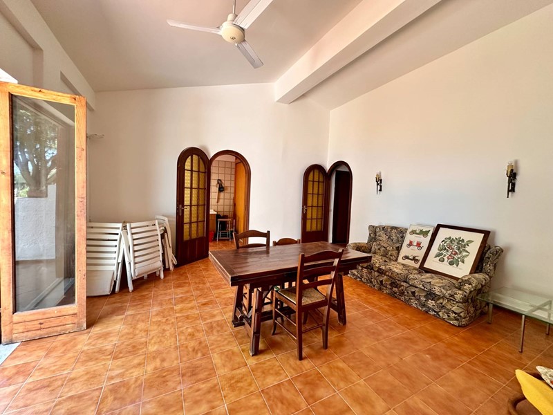 La villa si sviluppa su un unico livello, con ingresso su un ampio e luminoso salone, cucina, disimpegno, una camera matrimoniale e due camerette, ideali per accogliere famiglia e ospiti.