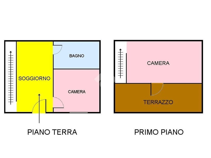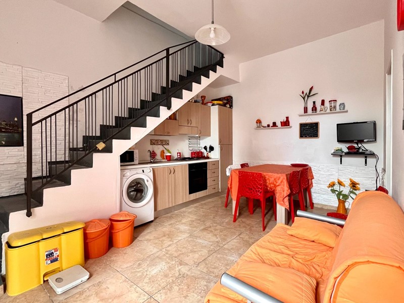 Il piano terra presenta ingresso tramite persiana direttamente su ambiente cucina-soggiorno, dalla quale accediamo a bagno e a camera da letto con finestrata.
