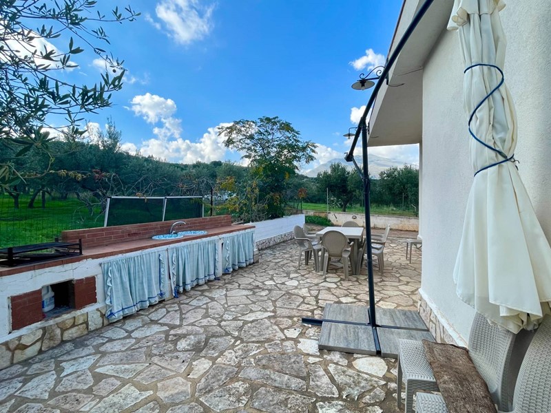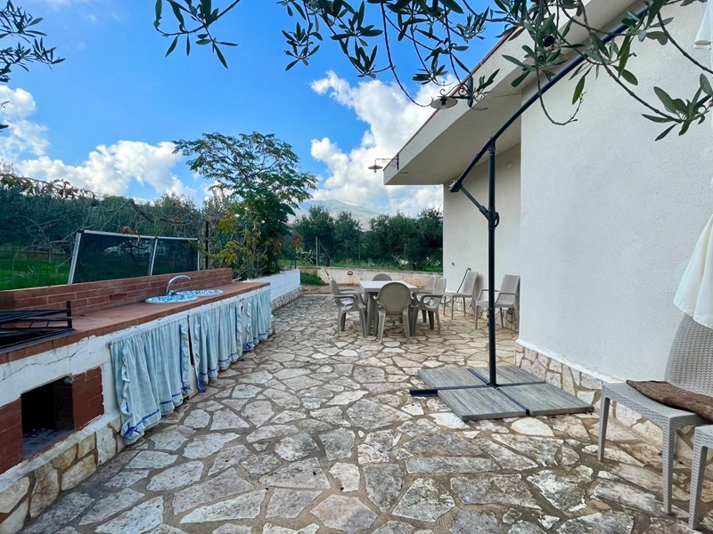 L'immobile è circondato da ampio terreno di circa 3.700 mq, attualmente piantumato ad uliveto. Nella parte posteriore della villa si trova una comoda zona barbecue, accompagnata da doccia esterna.